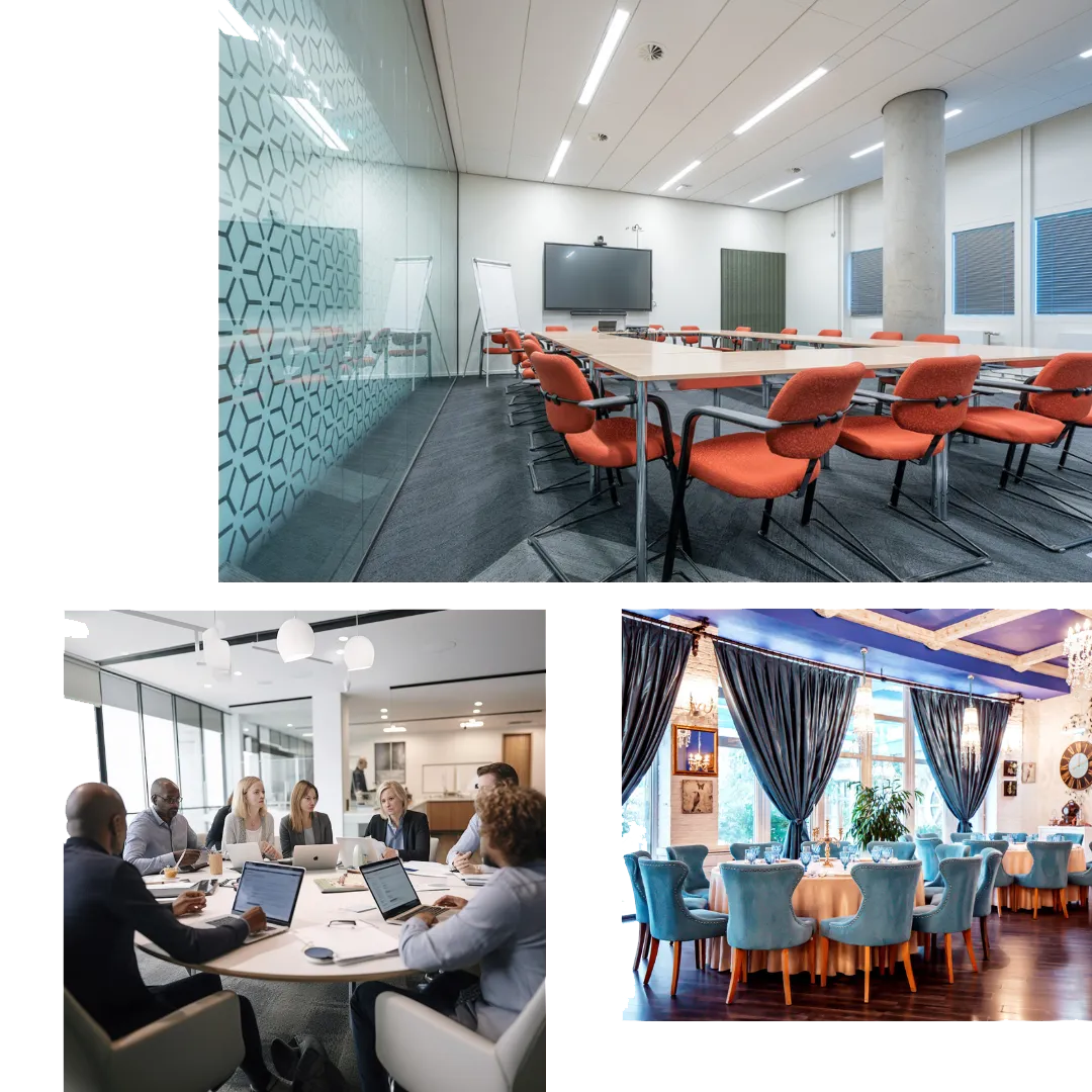Specialized spaces designed for training sessions, featuring on-site catering and support services.